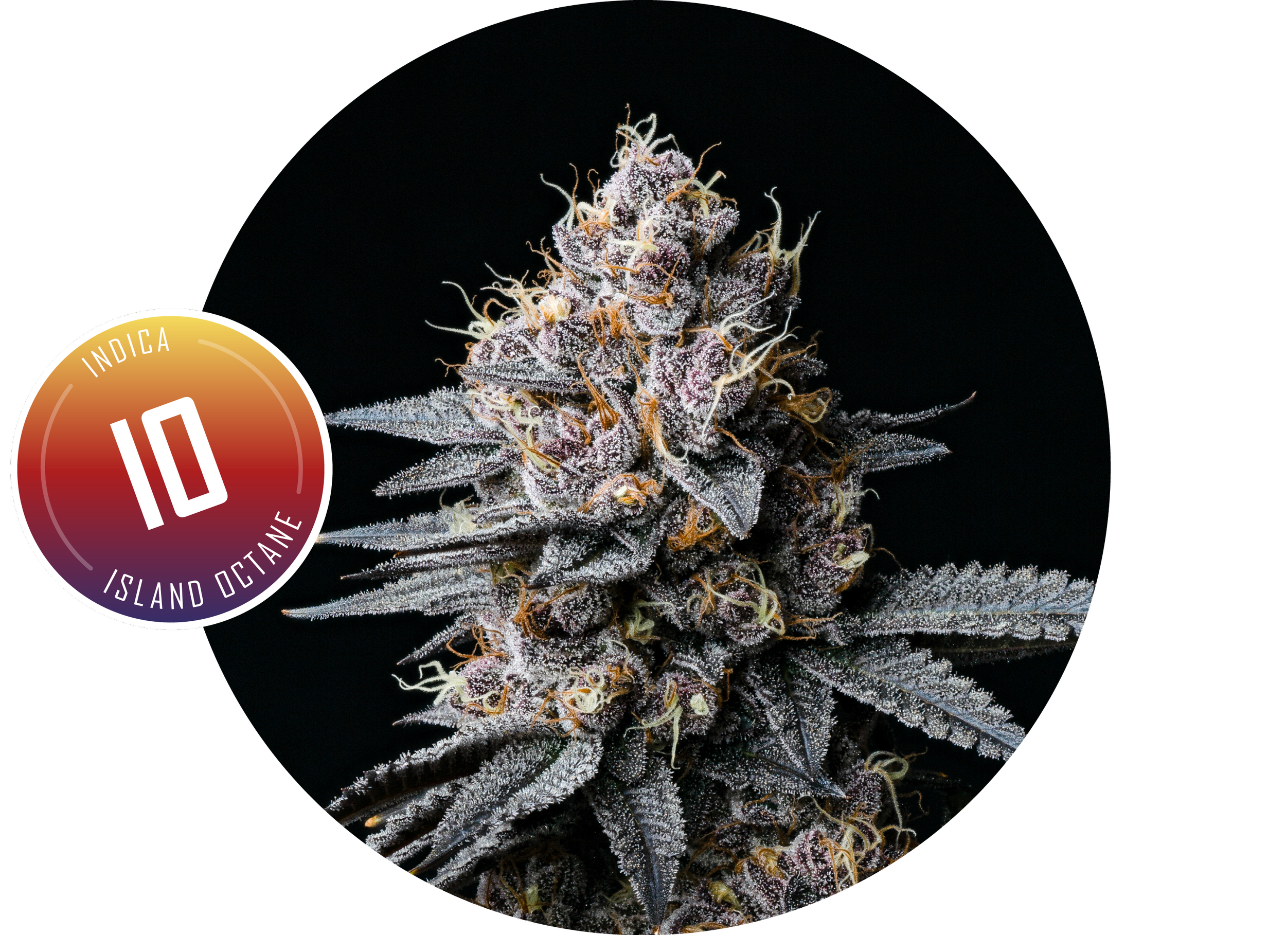 Originally bred by Solfire Gardens, Island Octane is the result of crossing Island Sunset x Gas Guzzler. Island Sunset is a sweet hybrid that crosses. The Gas Guzzler side of Island Octane is a robust indica-dominant hybrid known for its potent, fuel-like aroma with sweet, earthy undertones and a balanced high.