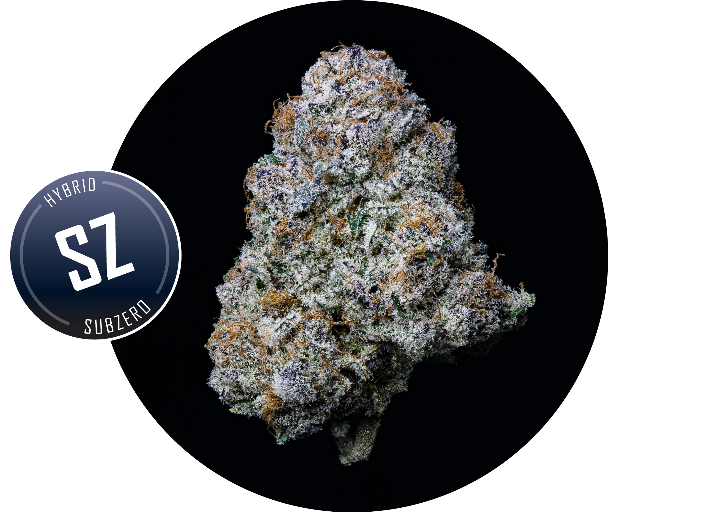 SubZero delivers an over the top aroma of sweet, sugary berry and citrus that lingers after you re-seal the jar. The buds are very chunky and display a pale, light colored green that is complimented well by the trichomes that cover the entirety of the flower. Effects of the SubZero could be described as being on the Indica leaning hybrid side of the spectrum, offering a deep relaxing body high while also giving a euphoric mental boost.